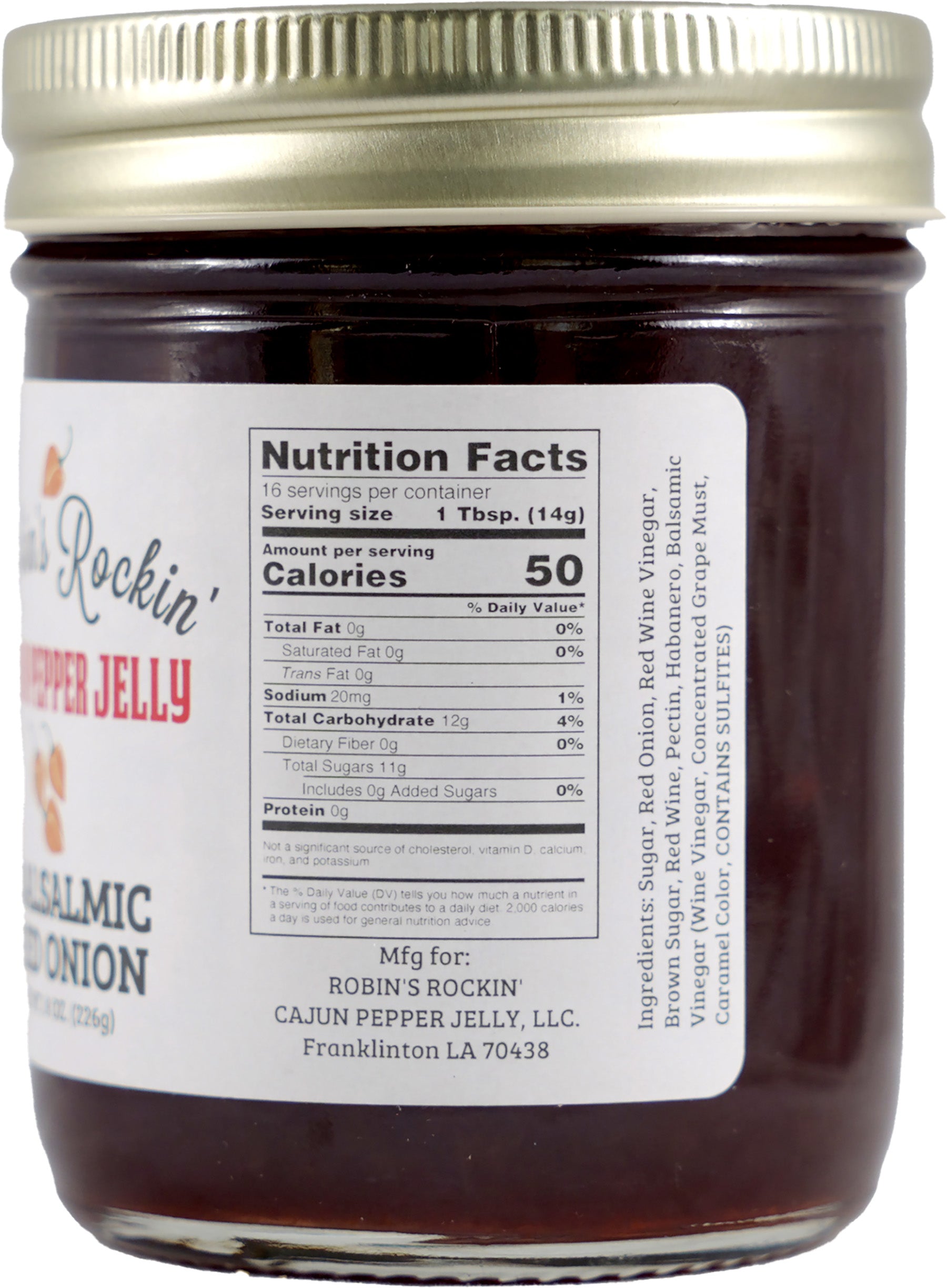 A moderately spicy blend of fresh chopped red onion, locally grown habaneros, a nice cabernet, balsamic vinegar, with white and brown sugar! It is well suited for a hamburger with a slice of gouda, a hot dog with spicy brown mustard, meat pasta, a nice smoked gouda, fresh mozzarella and brie.