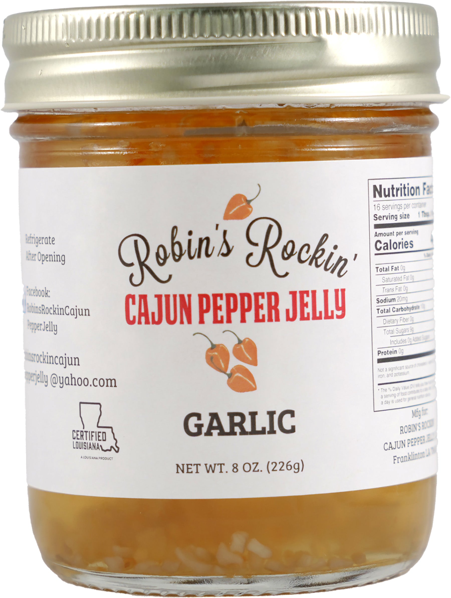 A hot combination of chopped garlic, vinegar and locally grown habaneros! This jelly loves everything, meat, pasta, seafood, vegetables, a nice fresh mozzarella, and a nutty parmisano.