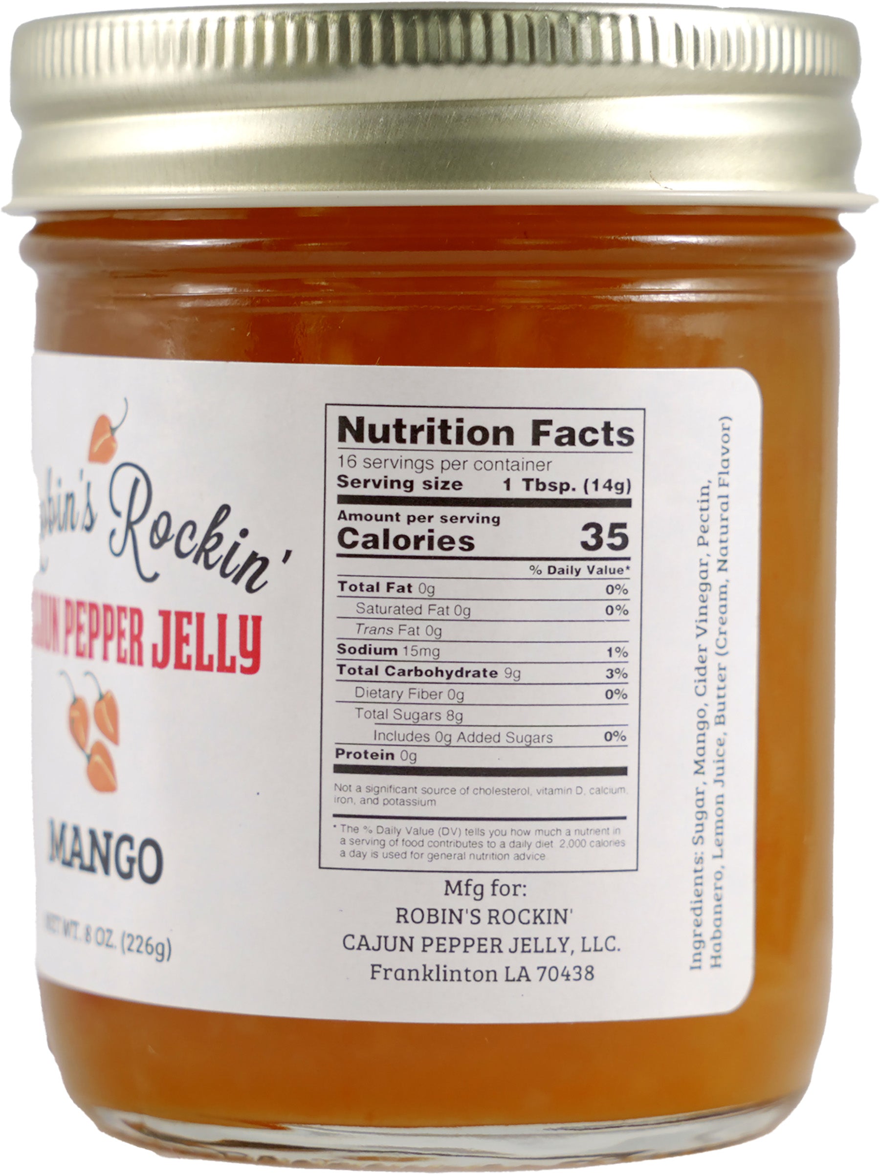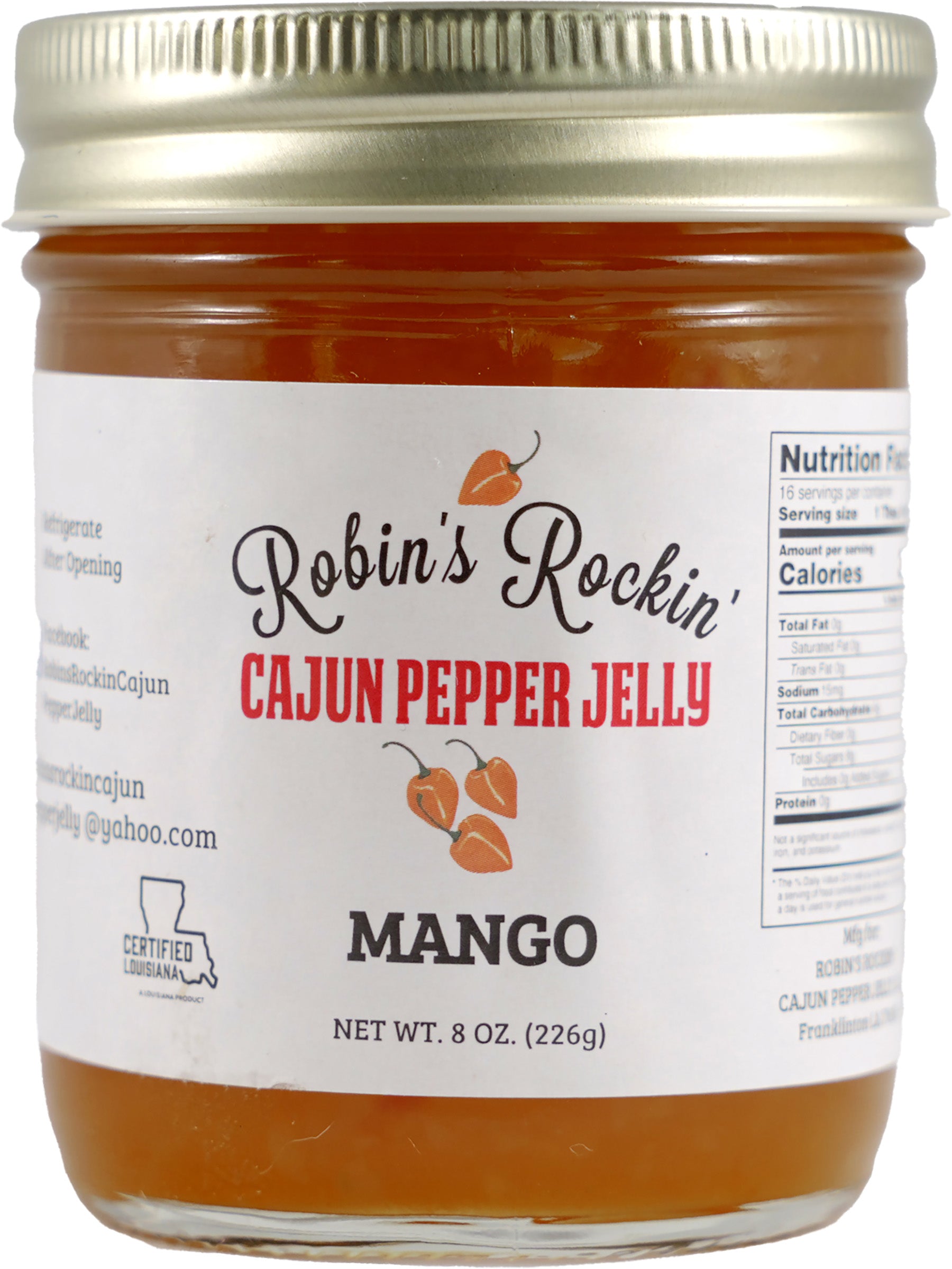Mango- A spicy hot blend of chunky mango and locally grown habanero. Pairs well with seafood, pork, boring salsas, it likes a brie and it makes a great sweet and sour sauce!