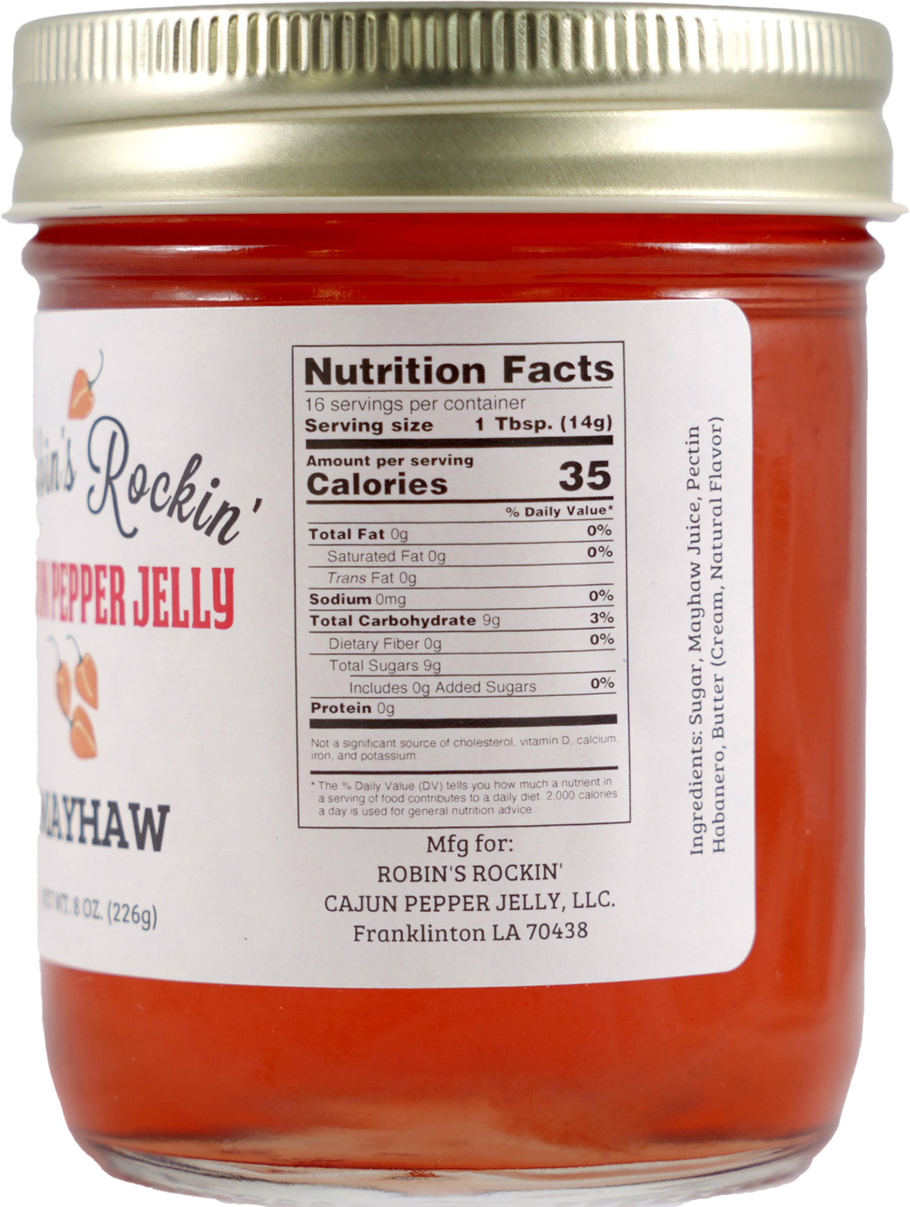 Mayhaw- A spicy hot take on traditional mayhaw jelly! A combination of mayhaw and locally grown habanero. Great for basting meat, and sautéing vegetables, it loves a brie and tangy goats cheese.