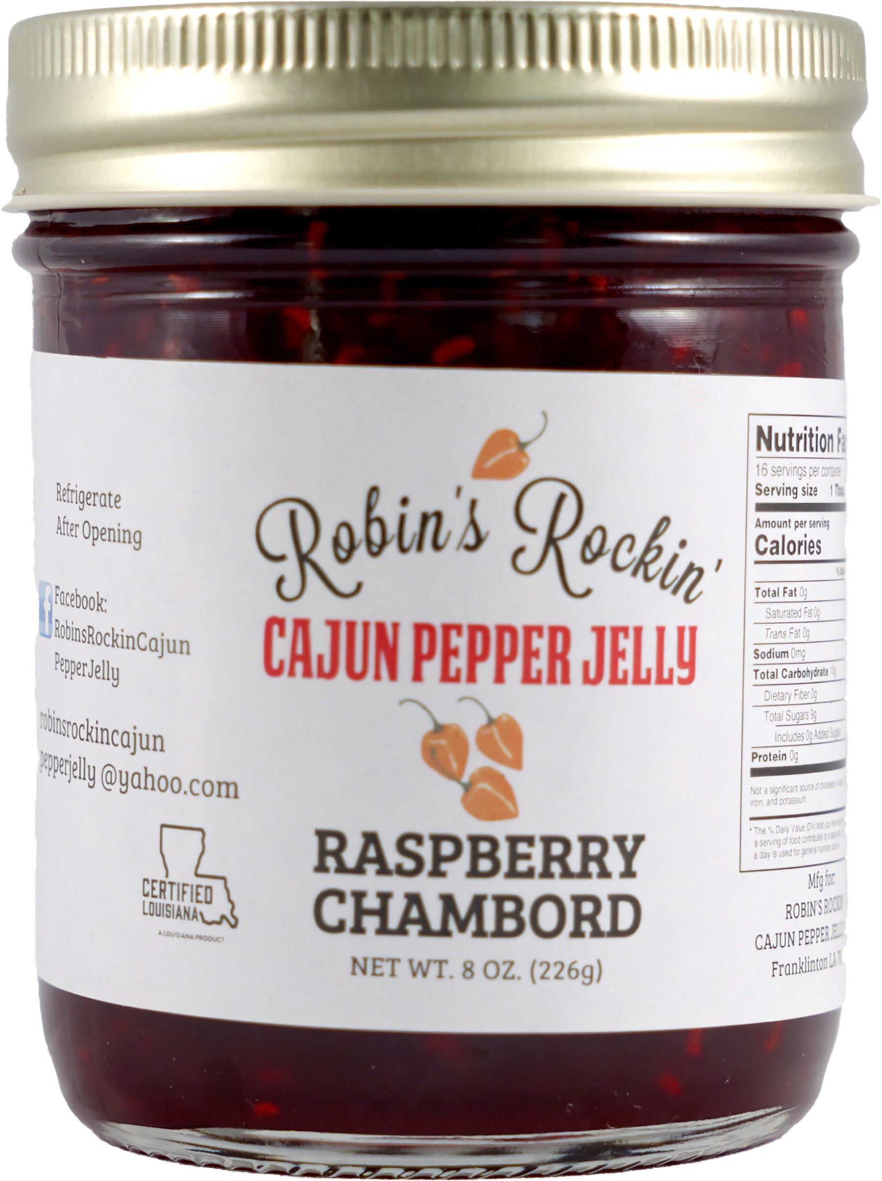 Taste like a spicy dessert! A mild blend of whole raspberries, locally grown habaneros, and Chambord liquor! It loves bbq ribs, meat, brie, goats cheese, dark chocolate, ice cream, and cheesecake.